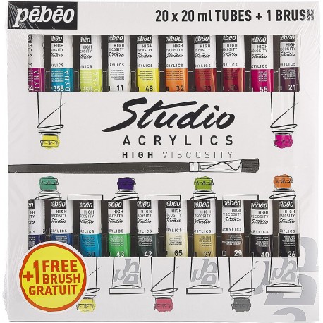 cet étui de 20 tubes de peinture acrylique aux couleurs lumineuses, simplifiez-vous la vie en ajoutant en un clin d’œil une multitude de nuances ou réalisez vos propres mélanges originaux. Un pinceau est inclus pour vos mélanges.