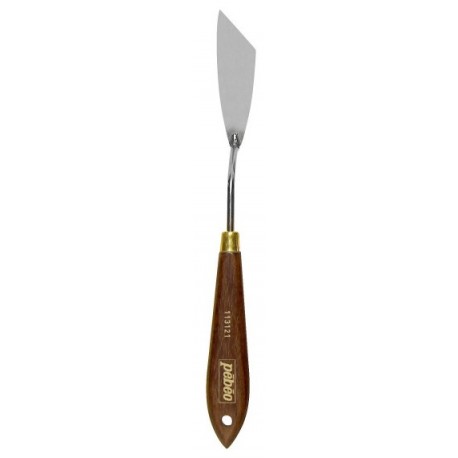 Couteau à peindre, pour une utilisation avec des peintures acryliques, à l'huile et des auxiliaires permettant de travailler la matière (modeling paste, mortiers, gels...). L'utilisation de ce couteau va être privilégiée pour apporter des détails fins et précis à une œuvre.