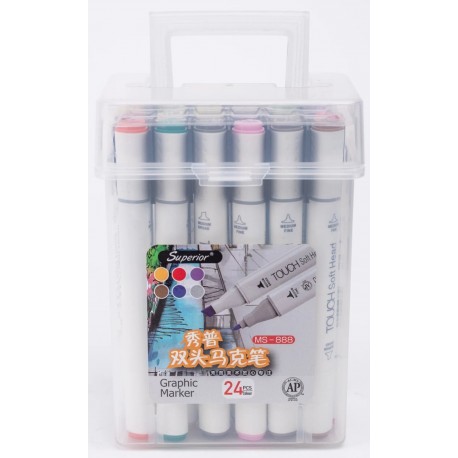 Box de 24 Marqueurs Alcool double pointe Superior Art Markers - Touch